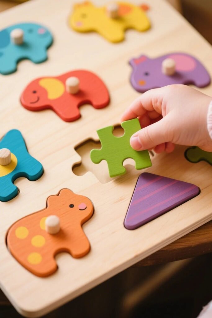 Bright yet calming colors, high-contrast flashcards, and visual puzzles that enhance:
